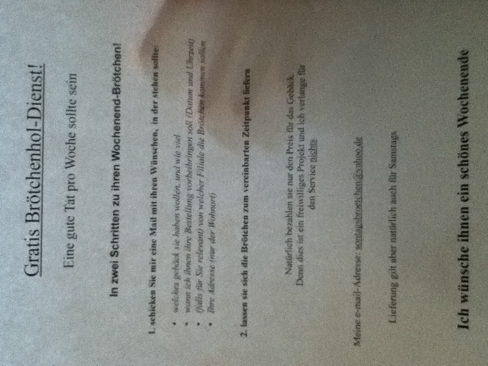 Gute Tat, Brötchen holen gehen (gratis, Service, Nachbarschaft)